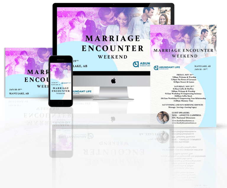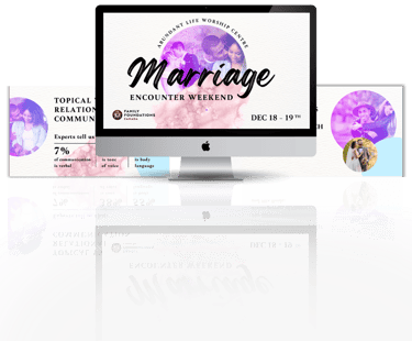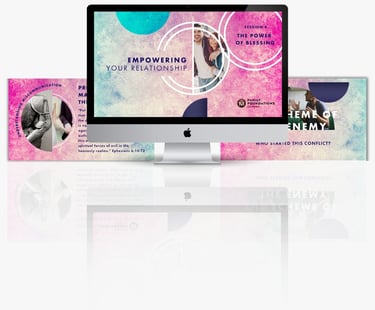 The idea behind it was having the circles overlapping signifies coming together and intimacy. The collage at the top shows various stages of intimacy in a marriage. The blue and white colors give a feminine feel but still a touch of masculinity. Assets included: fb graphics, fb story, IG graphics, 8.5x5.5" flyer, promo video