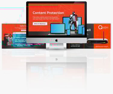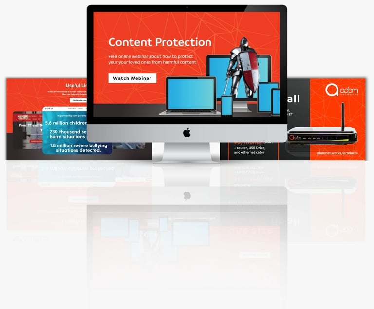 This was advertising a webinar on Content Protection, how to keep yourself and loved ones safe on the internet. I used the knight popping out to symbolize him protecting the digital devices. The colours were brand colours of adamnetworks. Assets included: a web page, downloadable pdf, and fb graphics.