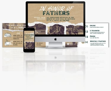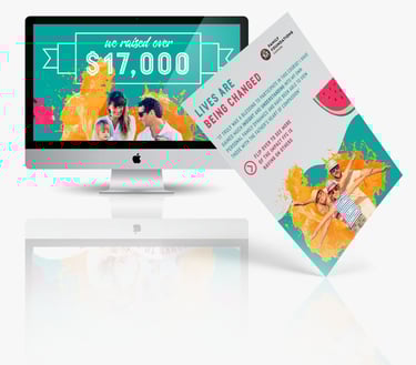 This was for the FFC 2021 summer giving campaign. I went with the teal and splash of orange to give it a fun summer vibes feel. Assets included: a giving letter, email graphics and fb graphics.