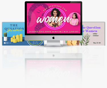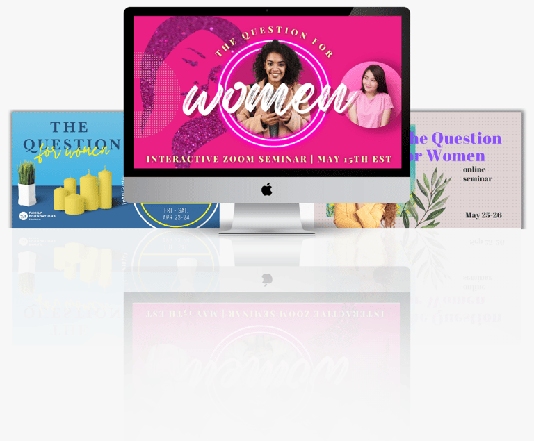 This is a seminar specifically for women that is looking at the question “who am I?” I chose the bold pink to grab attention right off the bat, then used the neon circle as a focal point. These are designs from different years the seminar was advertised with the most recent being in front.