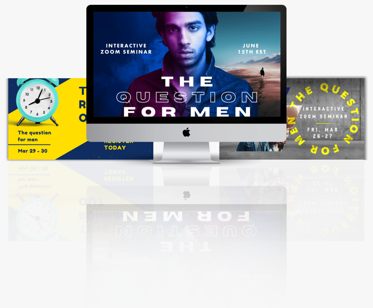 This is a seminar specifically for men that is looking at the question “who am I?” I chose a bold approach to give it a more masculine feel. These are designs from different years the seminar was advertised with the most recent being in front. I used the desert photo to create a feeling of exploration.