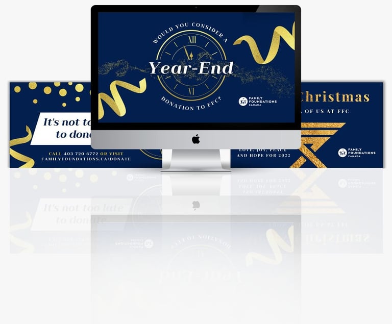 This was the 2021 campaign for Christmas. I wanted to give the entire campaign a sophisticated feel, so I used the dark blue and gold colour scheme. Assets included: fb graphics, a postcard, and email graphics. We ended up getting over 17k from this campaign.